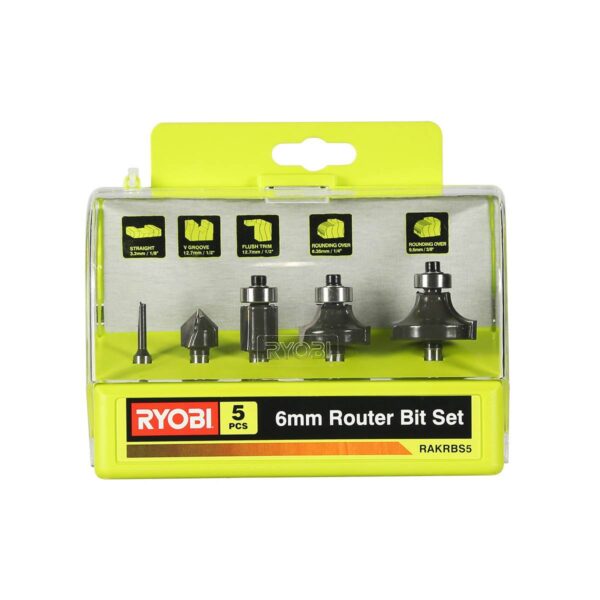 RYOBI 5-teiliges Fräserset, Zubehör für Oberfräsen, 6 mm Schaft, für R18TR-0 / RRT1600-K