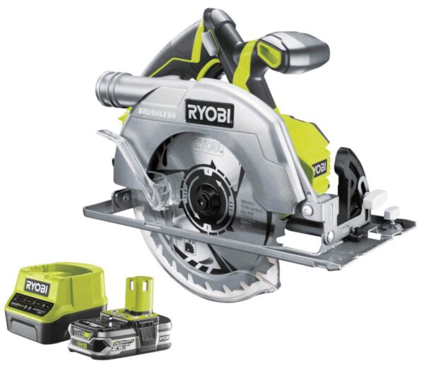 Ryobi Set bestehend aus: Brushless Akku-Handkreissäge ONE+ 18 V R18CS7-0; 2,5 Ah Akku und Ladegerät | Beeindruckende Schnittkapazität und modernste Akku Technologie