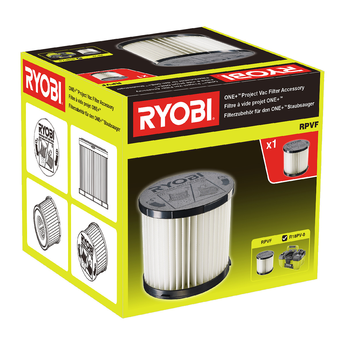 RYOBI Ersatzfilter, Zubehör für 18 V ONE+ Akku Nass- und Trockensauger RV1811-0
