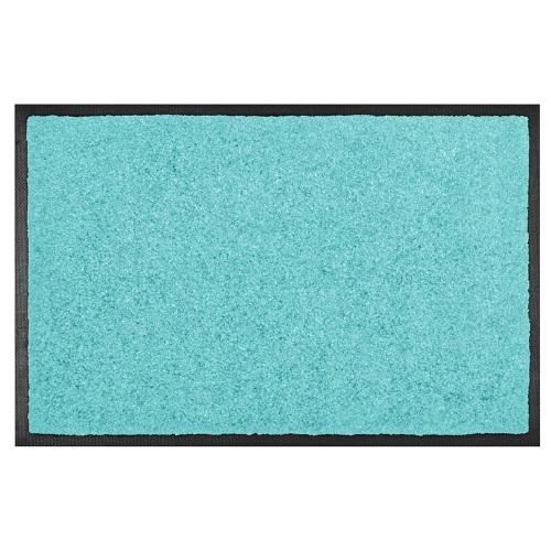 Mit dieser einfarbigen Sauberlaufmatte in Hellblau begruessen Sie Ihre Besucher mit einer neutralen Matte. Diese sehr hochwertige Tuermatte ist reissfest, knitterfrei, waschbar. Da sie mit 7 mm Gesamthoehe sehr flach ist, passt sie unter fast jede Tuer. Die Sauberlaufmatte ist Schadstoffgeprueft und fuer Allergiker geeignet. Sie erhalten 5 Jahre Herstellergarantie.. Pflegetipps: Waschen Sie die neutralen Sauberlaufmatte in Hellblau separat bei 40Grad Temperatur mit Feinwaschmittel, schleudern diese auf niedriger Stufe, dadurch richten sich die Fasern auf, der Mattenflor wird aktiviert und transportbedingte Falten und Knicke werden wieder glatt. Pflegen Sie so Ihre Sauberlaufmatte regelmaessig und Sie werden ueberrascht sein, wie viele Jahre Qualitaet und Farbe erhalten bleiben.. Rueckenbeschichtung: Nitrilgummibeschichtung, Dicke ca. 1,4 mm. Trittrandbreite ca. 20 mm. Florhoehe ca. 7 – 8 mm. Rueckgaberecht ist ausgeschlossen, da es sich um ein individuelles Produkt handelt.