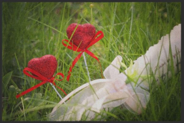 Mit dieser Sauberlaufmatte Hochzeit 4247 zaubern Sie nicht nur Ihren Besuchern ein Laecheln ins Gesicht. Diese sehr hochwertige Tuermatte ist reissfest, knitterfrei, waschbar. Da sie mit 7 mm Gesamthoehe sehr flach ist, passt sie unter fast jede Tuer. Die Sauberlaufmatte ist Schadstoffgeprueft und fuer Allergiker geeignet. Sie erhalten 5 Jahre Herstellergarantie.. Pflegetipps: Waschen Sie die Sauberlaufmatte Hochzeit 4247 separat bei 60Grad Temperatur mit Feinwaschmittel, schleudern diese auf niedriger Stufe, dadurch richten sich die Fasern auf, der Mattenflor wird aktiviert und transportbedingte Falten und Knicke werden wieder glatt. Pflegen Sie so Ihre Sauberlaufmatte regelmaessig und Sie werden ueberrascht sein, wie viele Jahre Qualitaet und Farbe erhalten bleiben.