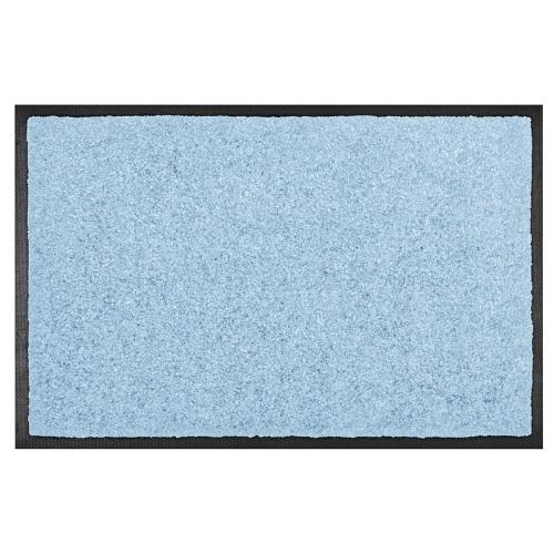 Mit dieser einfarbigen Sauberlaufmatte in Lichtblau begruessen Sie Ihre Besucher mit einer neutralen Matte. Diese sehr hochwertige Tuermatte ist reissfest, knitterfrei, waschbar. Da sie mit 7 mm Gesamthoehe sehr flach ist, passt sie unter fast jede Tuer. Die Sauberlaufmatte ist Schadstoffgeprueft und fuer Allergiker geeignet. Sie erhalten 5 Jahre Herstellergarantie.. Pflegetipps: Waschen Sie die neutralen Sauberlaufmatte in Lichtblau separat bei 40Grad Temperatur mit Feinwaschmittel, schleudern diese auf niedriger Stufe, dadurch richten sich die Fasern auf, der Mattenflor wird aktiviert und transportbedingte Falten und Knicke werden wieder glatt. Pflegen Sie so Ihre Sauberlaufmatte regelmaessig und Sie werden ueberrascht sein, wie viele Jahre Qualitaet und Farbe erhalten bleiben.. Rueckenbeschichtung: Nitrilgummibeschichtung, Dicke ca. 1,4 mm. Trittrandbreite ca. 20 mm. Florhoehe ca. 7 – 8 mm. Rueckgaberecht ist ausgeschlossen, da es sich um ein individuelles Produkt handelt.