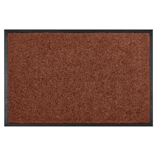 Mit dieser einfarbigen Sauberlaufmatte in Rost begruessen Sie Ihre Besucher mit einer neutralen Matte. Diese sehr hochwertige Tuermatte ist reissfest, knitterfrei, waschbar. Da sie mit 7 mm Gesamthoehe sehr flach ist, passt sie unter fast jede Tuer. Die Sauberlaufmatte ist Schadstoffgeprueft und fuer Allergiker geeignet. Sie erhalten 5 Jahre Herstellergarantie.. Pflegetipps: Waschen Sie die neutralen Sauberlaufmatte in Rost separat bei 40Grad Temperatur mit Feinwaschmittel, schleudern diese auf niedriger Stufe, dadurch richten sich die Fasern auf, der Mattenflor wird aktiviert und transportbedingte Falten und Knicke werden wieder glatt. Pflegen Sie so Ihre Sauberlaufmatte regelmaessig und Sie werden ueberrascht sein, wie viele Jahre Qualitaet und Farbe erhalten bleiben.. Rueckenbeschichtung: Nitrilgummibeschichtung, Dicke ca. 1,4 mm. Trittrandbreite ca. 20 mm. Florhoehe ca. 7 – 8 mm. Rueckgaberecht ist ausgeschlossen, da es sich um ein individuelles Produkt handelt.