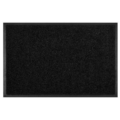 Mit dieser einfarbigen Sauberlaufmatte in Schwarz begruessen Sie Ihre Besucher mit einer neutralen Matte. Diese sehr hochwertige Tuermatte ist reissfest, knitterfrei, waschbar. Da sie mit 7 mm Gesamthoehe sehr flach ist, passt sie unter fast jede Tuer. Die Sauberlaufmatte ist Schadstoffgeprueft und fuer Allergiker geeignet. Sie erhalten 5 Jahre Herstellergarantie.. Pflegetipps: Waschen Sie die neutralen Sauberlaufmatte in Schwarz separat bei 40Grad Temperatur mit Feinwaschmittel, schleudern diese auf niedriger Stufe, dadurch richten sich die Fasern auf, der Mattenflor wird aktiviert und transportbedingte Falten und Knicke werden wieder glatt. Pflegen Sie so Ihre Sauberlaufmatte regelmaessig und Sie werden ueberrascht sein, wie viele Jahre Qualitaet und Farbe erhalten bleiben.. Rueckenbeschichtung: Nitrilgummibeschichtung, Dicke ca. 1,4 mm. Trittrandbreite ca. 20 mm. Florhoehe ca. 7 – 8 mm. Rueckgaberecht ist ausgeschlossen, da es sich um ein individuelles Produkt handelt.