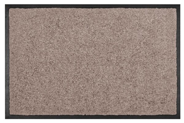 Mit dieser einfarbigen Sauberlaufmatte in Taupe begruessen Sie Ihre Besucher mit einer neutralen Matte. Diese sehr hochwertige Tuermatte ist reissfest, knitterfrei, waschbar. Da sie mit 7 mm Gesamthoehe sehr flach ist, passt sie unter fast jede Tuer. Die Sauberlaufmatte ist Schadstoffgeprueft und fuer Allergiker geeignet. Sie erhalten 5 Jahre Herstellergarantie.. Pflegetipps: Waschen Sie die neutralen Sauberlaufmatte in Taupe separat bei 40Grad Temperatur mit Feinwaschmittel, schleudern diese auf niedriger Stufe, dadurch richten sich die Fasern auf, der Mattenflor wird aktiviert und transportbedingte Falten und Knicke werden wieder glatt. Pflegen Sie so Ihre Sauberlaufmatte regelmaessig und Sie werden ueberrascht sein, wie viele Jahre Qualitaet und Farbe erhalten bleiben.. Rueckenbeschichtung: Nitrilgummibeschichtung, Dicke ca. 1,4 mm. Trittrandbreite ca. 20 mm. Florhoehe ca. 7 – 8 mm. Rueckgaberecht ist ausgeschlossen, da es sich um ein individuelles Produkt handelt.
