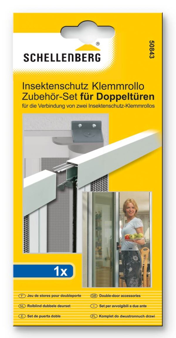 Das Schellenberg Zubehör-Set dient zur Verbindung von zwei Insektenschutz-Klemmrollo Türen. Es eignet sich für Türbreiten von bis zu 320cm. Die getrennte Bedienung beider Klemmrollos ist weiterhin gewährleistet.