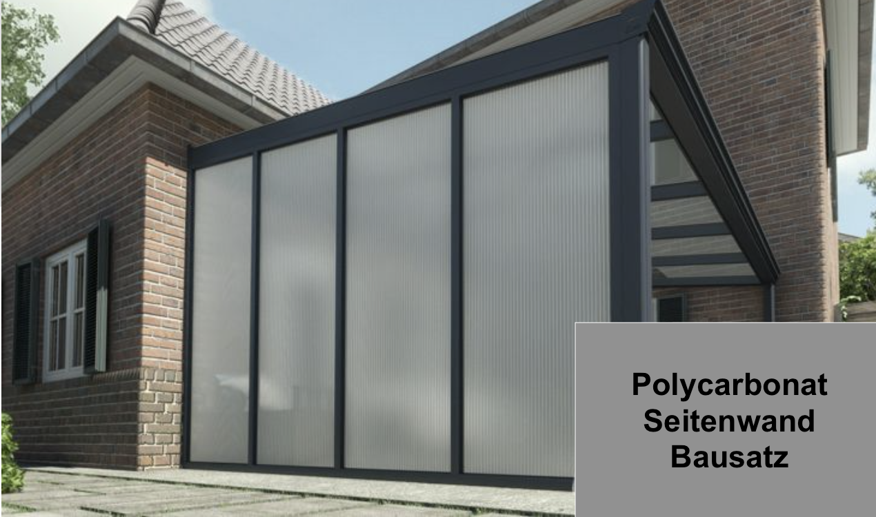 Durch die Montage einer festen Seitenwand aus Polycarbonat können Sie eine oder mehrere Seiten Ihrer Terrassenüberdachung abschließen. Neben der Privatsphäre bietet dies auch Schutz vor Wind und Regen, sodass Sie das ganze Jahr über Ihre Terrassenüberdachung genießen können. Wenn Sie dieses Produkt bestellen, erhalten Sie einen kompletten Seitenwand-Bausatz. Dieser Bausatz kann leicht auf die gewünschte Tiefe für die Terrassenüberdachungen angepasst werden, indem man die Profile kürzt. Die Montage der Seitenwand ist ganz einfach mit unserer benutzerfreundlichen Anleitung. Sie können hierbei unter Polycarbonat Opal & Klar wählen.  Die Bausätze mit einer Breite bis 3m werden mit 2.5m hohen, die bis 4m mit 3.5m hohen Polycarbonatplatten geliefert.