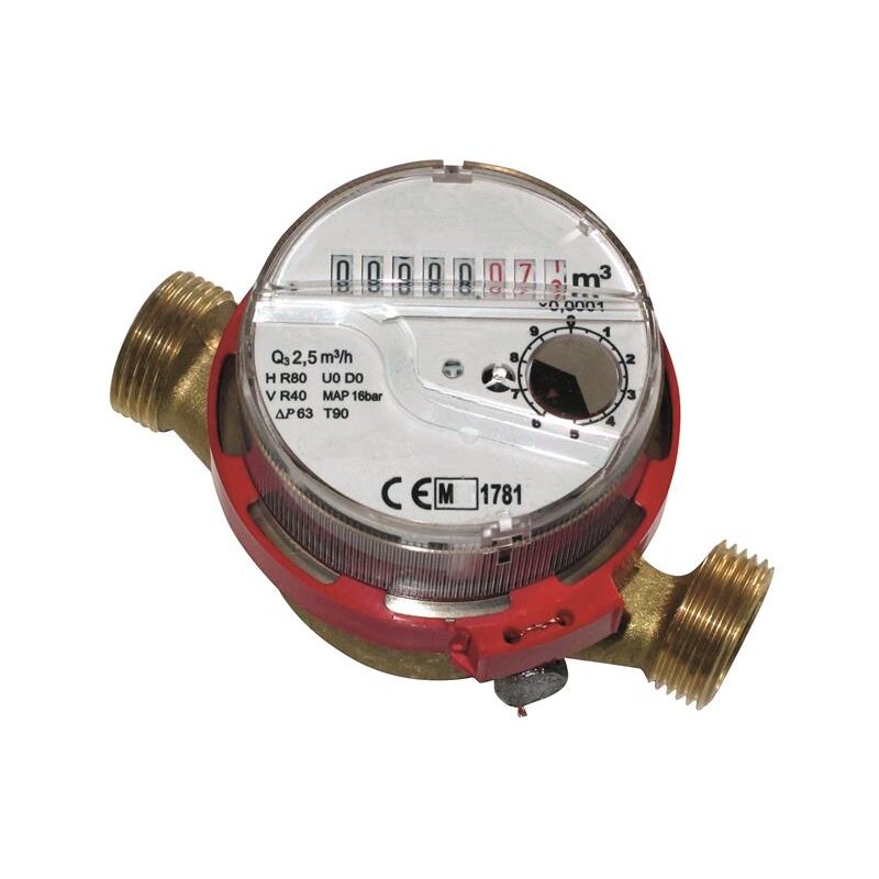 Wasserzähler 3/4″ 80mm (warm) Wohnungswasserzähler Q3 2,5 3/4″ AG Baulänge: 80 mm
